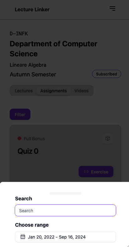 Seamless Content Access: A powerful search function allows students to quickly locate specific materials across all courses. Filtering options by type (lectures, assignments, videos) and calendar events further enhance usability.